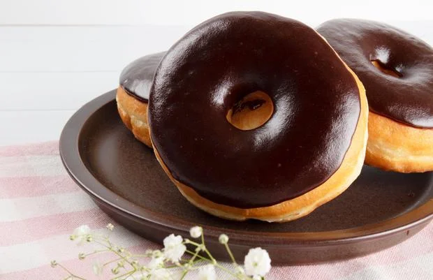 - A traditional donut dipped in chocolate icing.