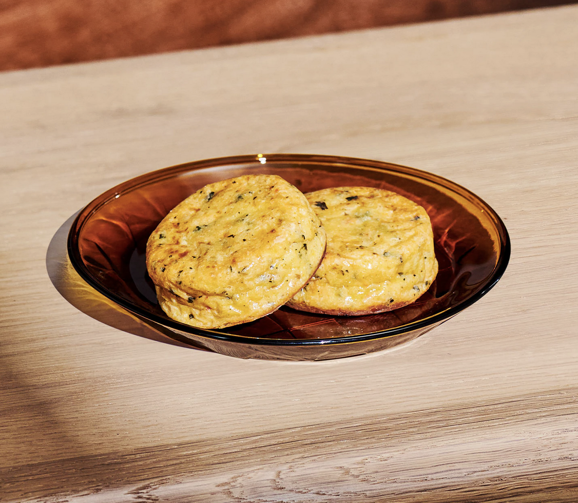 - Cage-free eggs, crumbled Italian sausage, sun-dried tomato pesto, basil, and Monterey Jack cheese.